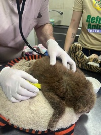 Según lo informado por el biólogo Rodolfo Vargas, el bebé perezoso es estable.