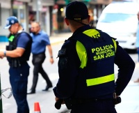 Un oficial del Policía municipal de San José Le dispararon este viernes, después de una violenta batalla con un sujeto que un control policial intentó evadir completamente Avenida centralen el corazón de la capital.