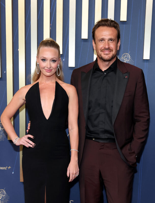 Jason Segel Se destacó con un elegante atuendo marrón, y combinó una camiseta negra tierna para un aspecto clásico y moderno al mismo tiempo.