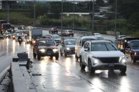 Las imágenes muestran tráfico pesado en el área, donde los conductores incluso tienen que moderar la velocidad de las calles, así como por la piscina generada en el acto.