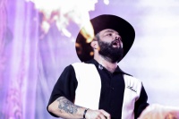 Respaldado por su banda con trompeta, saxofón y guitarras que definen su estilo inconfundible.